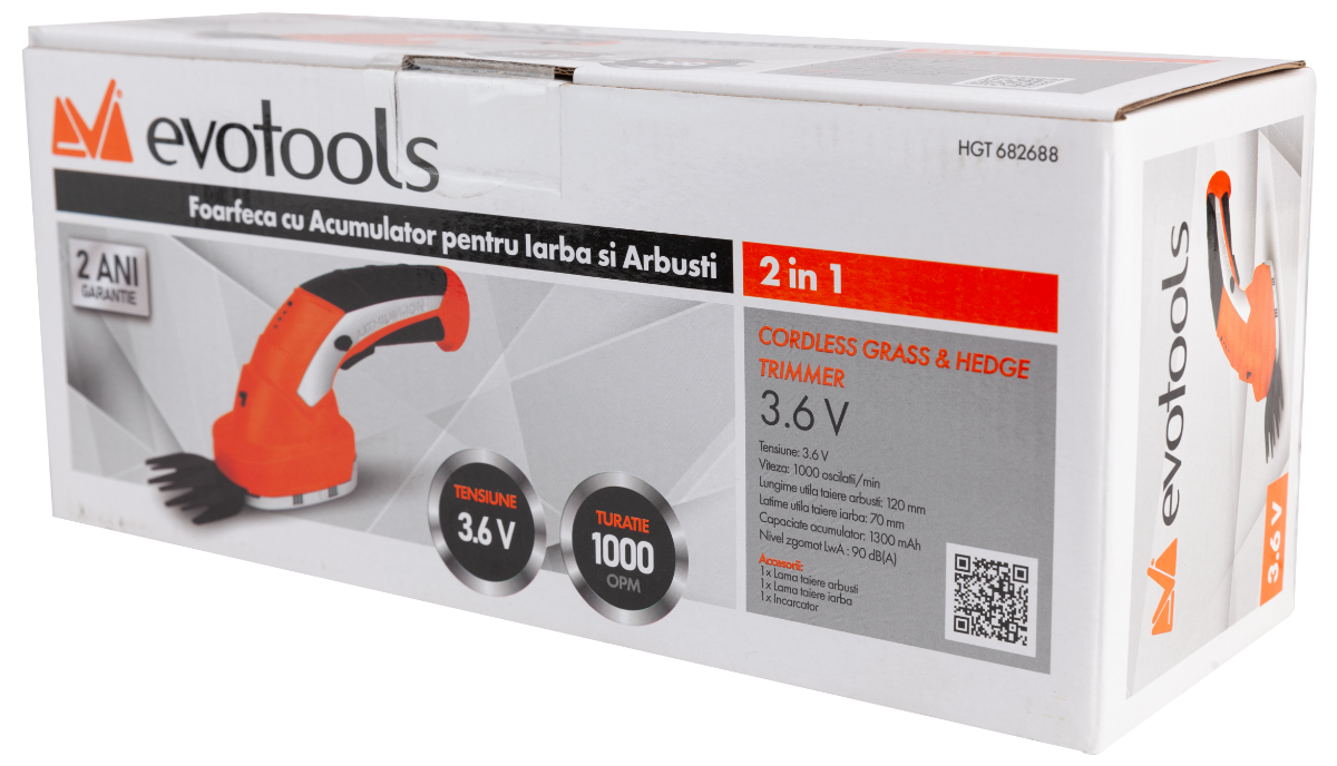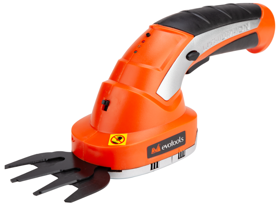 The EvoTools® 2-in-1 Cordless Grass and Shrub Shears are an ideal helper for trimming lawn edges and shaping ornamental shrubs. The shorter cutting blade is designed for trimming lawn edges, while the longer blade is used for shaping ornamental shrubs.