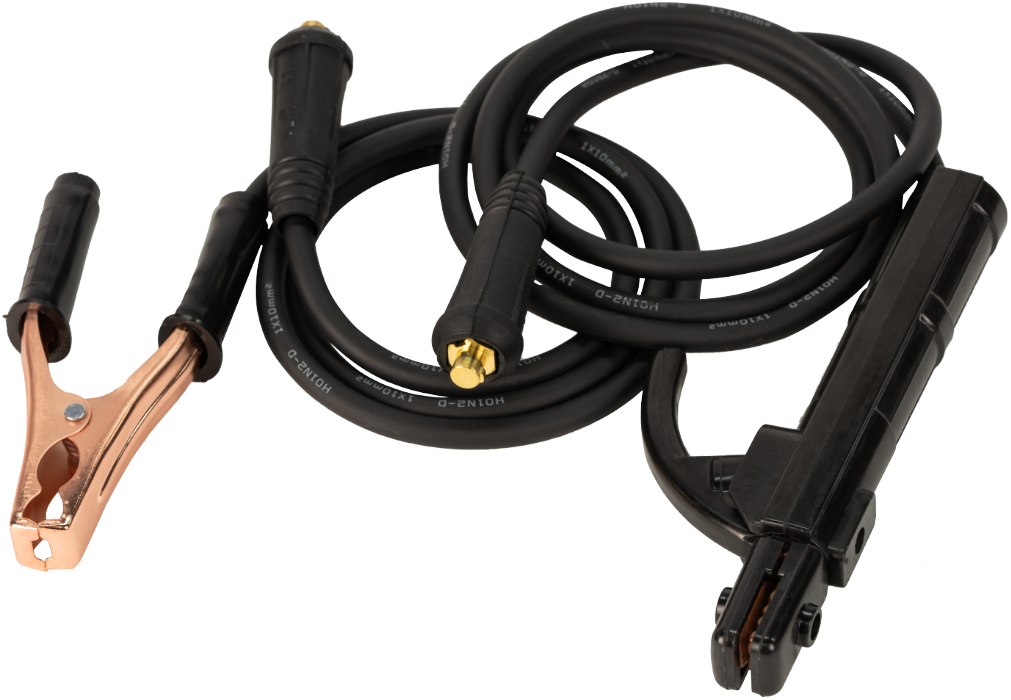 Accessories included: The unit is supplied with 2 clamps with cables, a welding mask and a brush with chipping hammer for cleaning the weld.