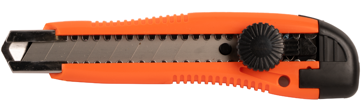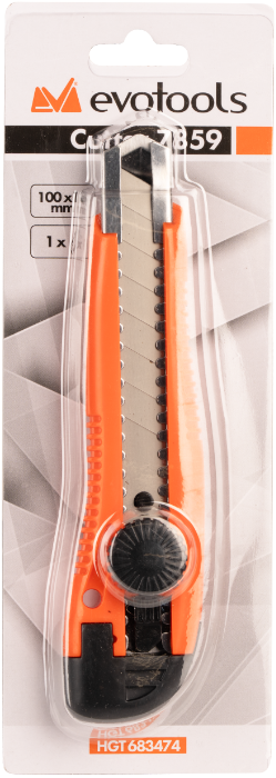 EvoTools® utility knife, Type 2, size 100 x 18 mm, equipped with 1 durable blade. Ideal for precise cuts in various materials, offering safety and comfort in use.