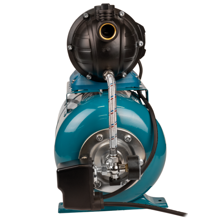 With a power of 800 W, the pressure booster set allows suction of water from a depth of up to 7 m and pumping to a maximum head of 38 m, ensuring a maximum flow rate of 83 L/min. The expansion vessel with a capacity of 19 L helps reduce the number of pump starts, extending the service life of the equipment. The pump body is made of corrosion-resistant cast iron, providing increased durability and long-term operational reliability. The tank is made of electrostatically painted steel, offering high strength, and the interior is fitted with a high-quality EPDM membrane, an elastic material resistant to pressure variations.