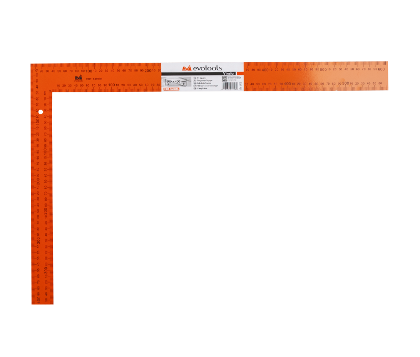 The square is a tool used in construction or carpentry for measuring and marking straight lines and angles during material processing. This instrument has 2 sides, graduated on both faces and of different lengths, forming a right angle to measure or mark angles precisely. It is an essential tool for ensuring accuracy and marking the angles required in various stages of construction.